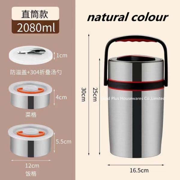 Office special vacuum insulated stainless steel lunch box natural color 2.2L hot food double wall insulated tiffin jar Images |